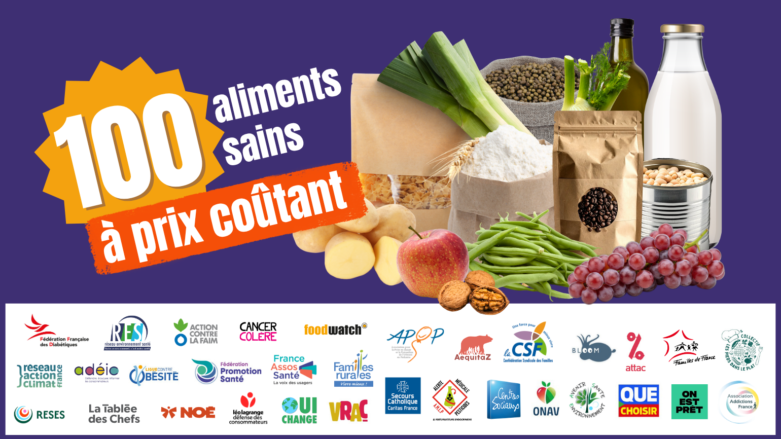 En unissant nos voix, nous demandons une obligation claire pour la grande distribution : rendre accessibles 100 produits bons pour la santé afin de soutenir le pouvoir d’achat et améliorer la santé publique en contribuant à plus d’accès à une alimentation digne pour toutes et tous. La grande distribution doit agir. Le gouvernement doit imposer des règles claires.